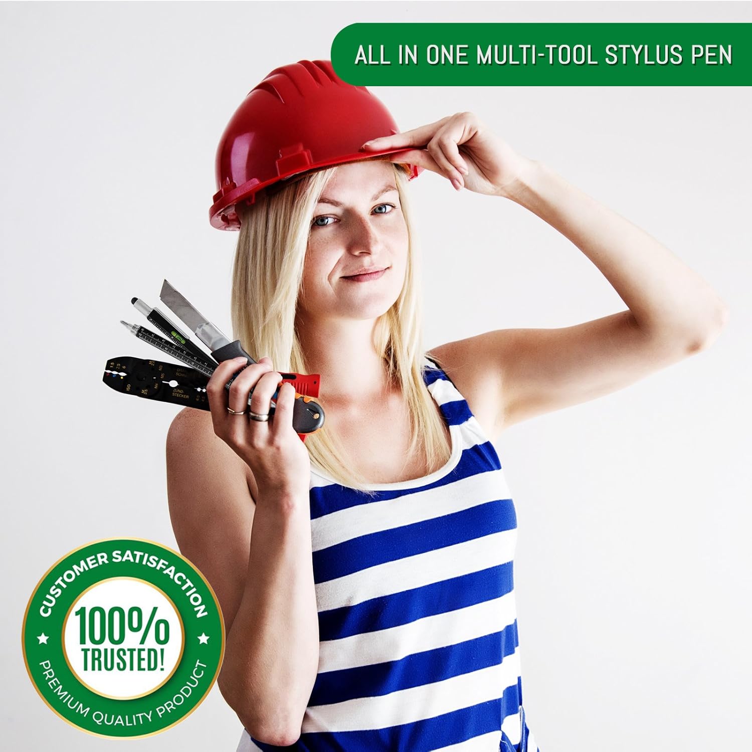 Other than writing, this pen also has a Philips flathead screwdriver tip, a stylus for mobile phones and tablets at the top, a spirit or bubble level and a printed ruler on the exterior.
